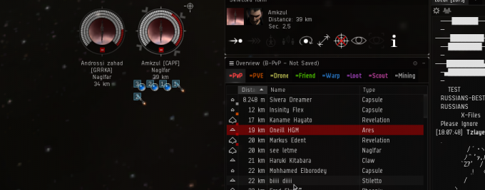 Da die Vanguards relativ simpel waren, versuchte ich mich Tags darauf selber als FC. Zwei der Jungs verpflichtete ich als Backup FCs. Falls ich Mist bauen würde sollten sie sofort brüllen und das Ruder übernehmen. Anfangs lief das Ganze etwas träge da ich mich erstmal einfinden musste, und auch da ich seit längerem keine Flotte mehr geleitet hatte. Nach und nach flutschte es aber immer besser: Targets per Tags zuweisen, Flottenmitglieder via Watchlist im Auge behalten und auf Focus Fire achten. Aber als dann noch ein alter Bekannter der Flotte beitrat vergaß ich vor lauter Freude wohl auf mein eigenes Schiff zu achten. Irgendjemand sagte dann "Hey, Nere nimmt Schaden!" und ein Blick aufs HUD verriet dass ich schon zur Hälfte im Armor war. Im Gegensatz zu mir waren die Logistiks aber auf Zack und stellten meine Schilde in Windeseile wieder her. Als Armortanker ist man trainiert das Schild zu ignorieren, aber zum Glück hat die Dominix auch nach dem Schild noch viel Puffer in Panzerung und Struktur.